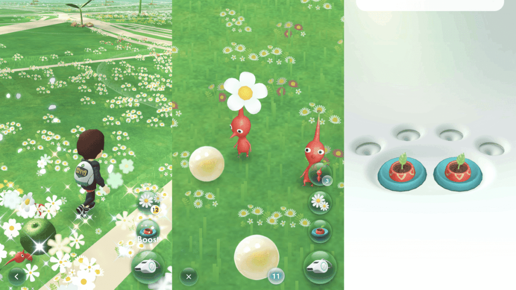 ゲームの基本は「苗」を育てることから始まるんだ。苗は歩くことで成長していき、一定の歩数を重ねるとピクミンとして引き抜けるようになる。赤や青などの基本ピクミンは比較的少ない歩数で育つけど、紫や白といった特別なピクミンはより多くの歩数が必要なんだよ。歩けば歩くほど新しい仲間が増えるから、毎日の散歩が自然と楽しくなる仕組みになっているんだ。歩数そのものが進行のカギになるところが面白いよ。