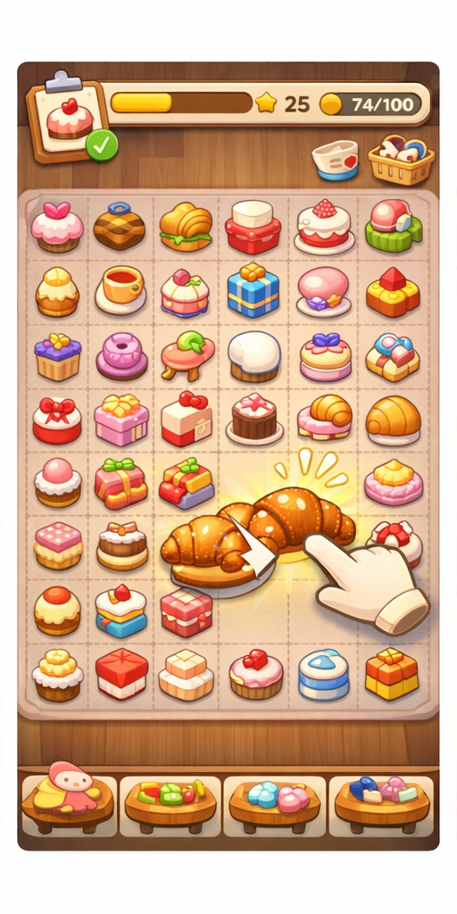 ゲームを進める基本は、同じアイテムを2つ以上くっつけて上位のアイテムを作る「マージパズル」 だよ。簡単な操作で素材を組み合わせて、顧客からの注文に応えていこう。パズルを進めるほどレベルアップして、どんどん新しい商品を作れるようになるんだ。